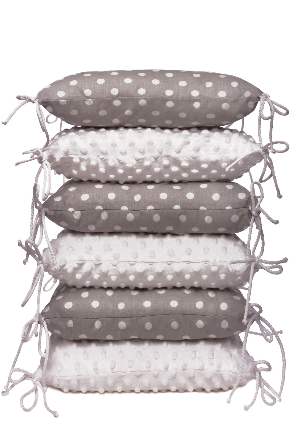 Polštářkový mantinel T-TOMI tvořený 6 kusy jednotlivých polštářků o velikosti 35 x 35 cm vyrobený ze 100% bavlny a z jemného, hřejivého a luxusního materiálu MINKY (3+3). Polštářky T-TOMI lze uvázat po boční straně postýlky a poskytnou tak Vašemu děťátku ochranu, pohodlí a bezpečí zároveň....