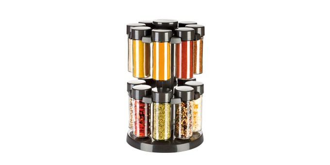 Luxusní souprava vynikající pro uložení koření na kuchyňské lince i jídelním stole. Koření je uloženo přehledně, díky otočnému stojánku je snadno dostupné. Násypka pro snadné plnění kořenek je uložena ve stojánku. Kořenky jsou univerzální, dodávány s 16 víčky pro mleté koření a 16 náhradními...