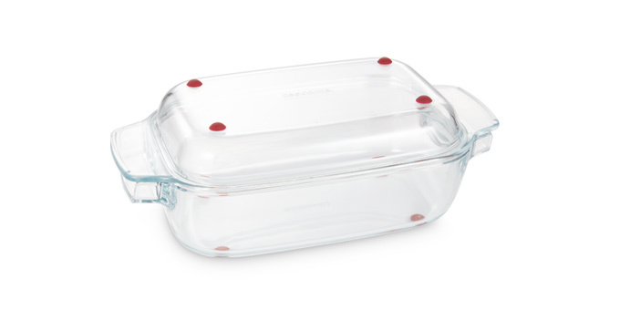 Masivní pekáč s poklopem ze žáruvzdorného borosilikátového skla. Se silikonovými nožkami, horký pekáč i poklop lze rovnou po vytažení z trouby položit na kuchyňskou linku nebo stůl. Komfortní úchyty, pekáč i poklop lze snadno uchopit. Vhodné do všech typů pečicích trub, do ledničky a do myčky. 3...