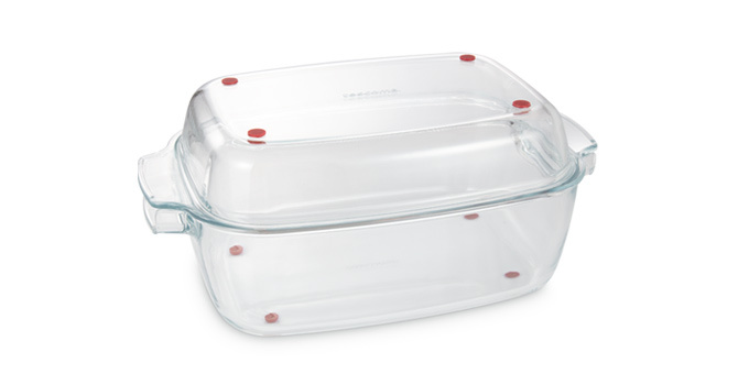 Masivní pekáč s poklopem ze žáruvzdorného borosilikátového skla. Se silikonovými nožkami, horký pekáč i poklop lze rovnou po vytažení z trouby položit na kuchyňskou linku nebo stůl. Komfortní úchyty, pekáč i poklop lze snadno uchopit. Vhodné do všech typů pečicích trub, do ledničky a do myčky. 3...