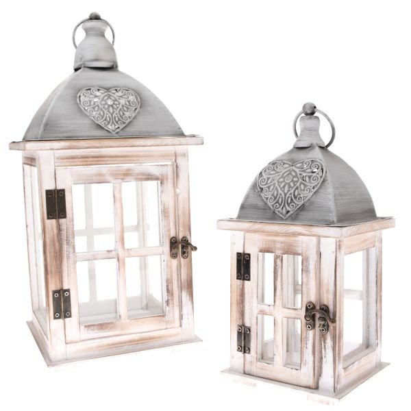 Dřevěná lucerna s kovovou střechou - sada 2ks, 0/4