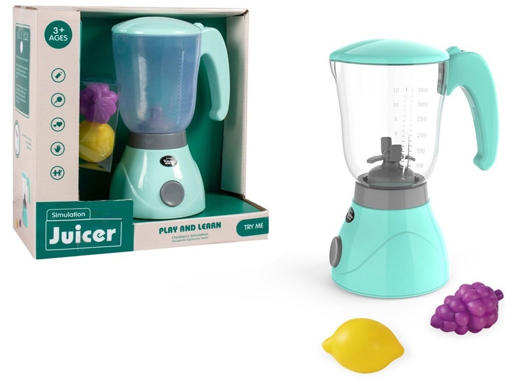 Mixer na baterie s doplňky (ovoce). Světelné a zvukové efekty, otočný mechanismus. Velikost hračky 14,5 x 10,5 x 20 cm. Napájení baterie 2 x AA 1,5 V (nejsou součástí). Vhodné pro děti od 3 let. Velikost balení 24,5 x 11 x 23,5 cm. prečítať celé