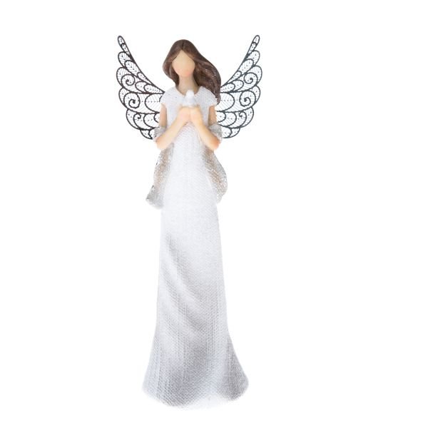 Polyresinový anděl s holubicí s kovovými křídly, 2/48