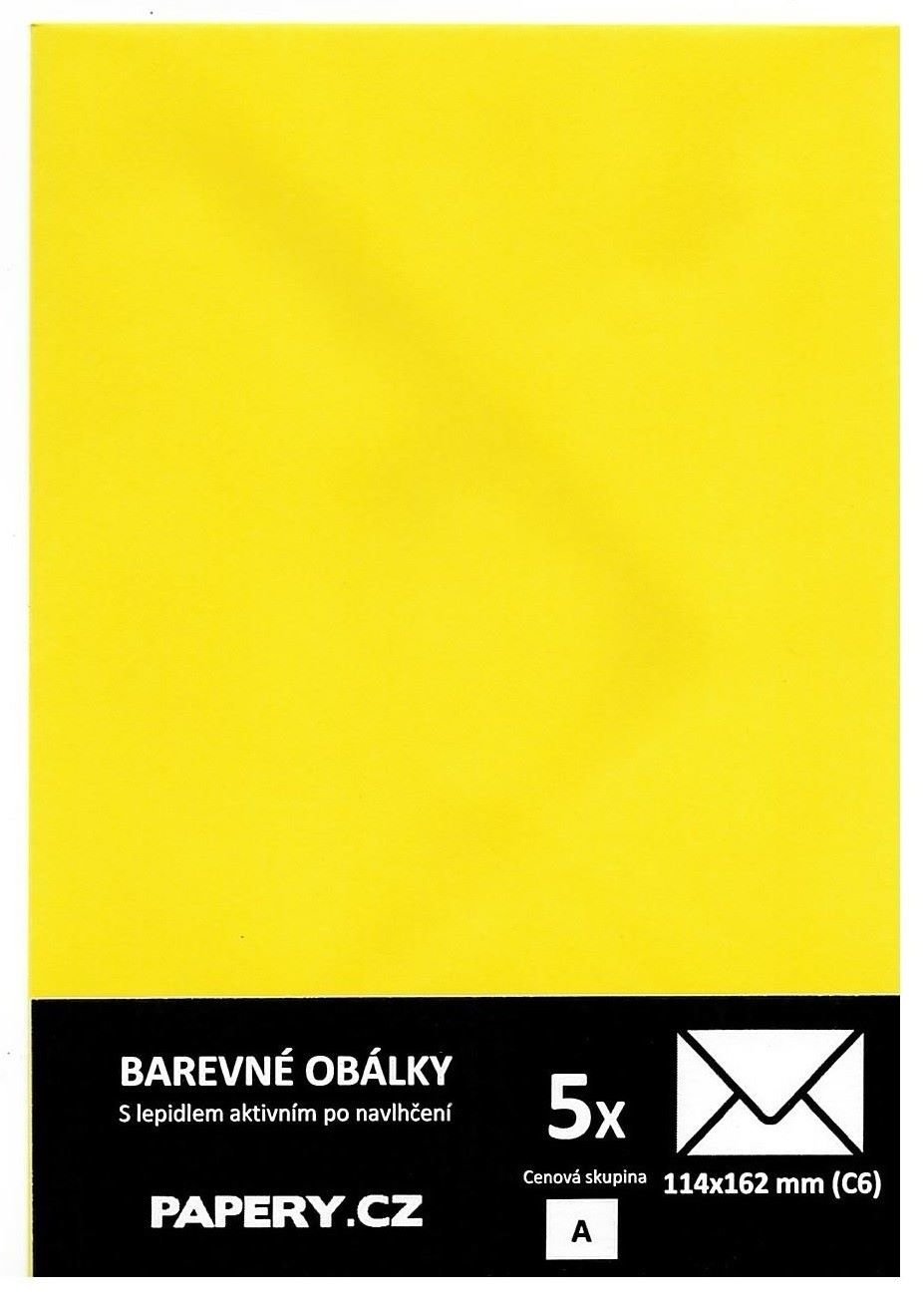 barevná obálka 114X162 ŽLUTÁ SLUNEČNICOVÁ, 5 kusů, 100 gm2, olizová
