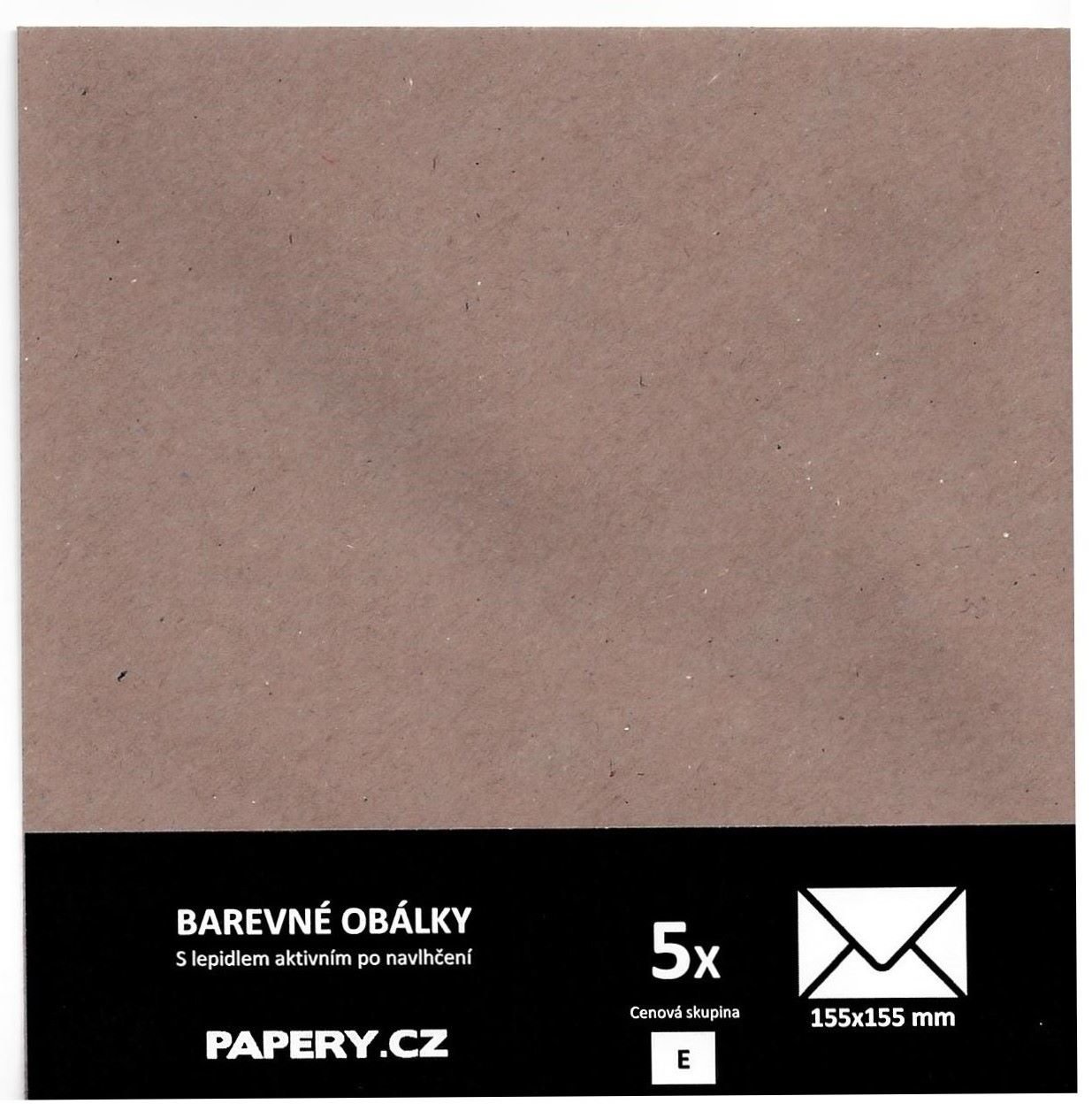 barevná obálka 155X155 HNĚDÁ RECYKLOVANÁ, 5 kusů, 100 gm2, olizová