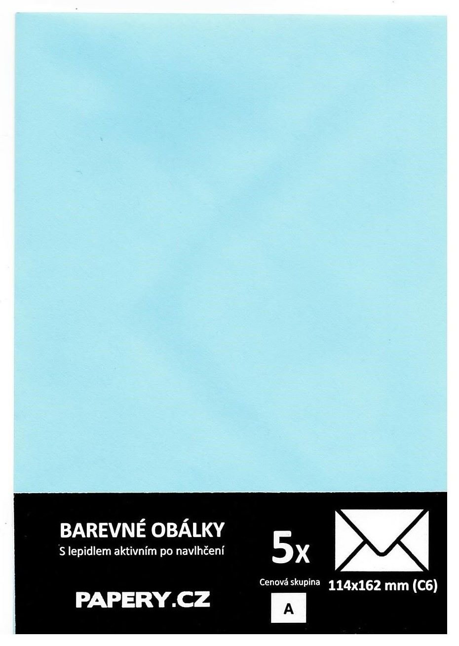 barevná obálka 114X162 MODRÁ PASTELOVÁ, 5 kusů, 100 gm2, olizová