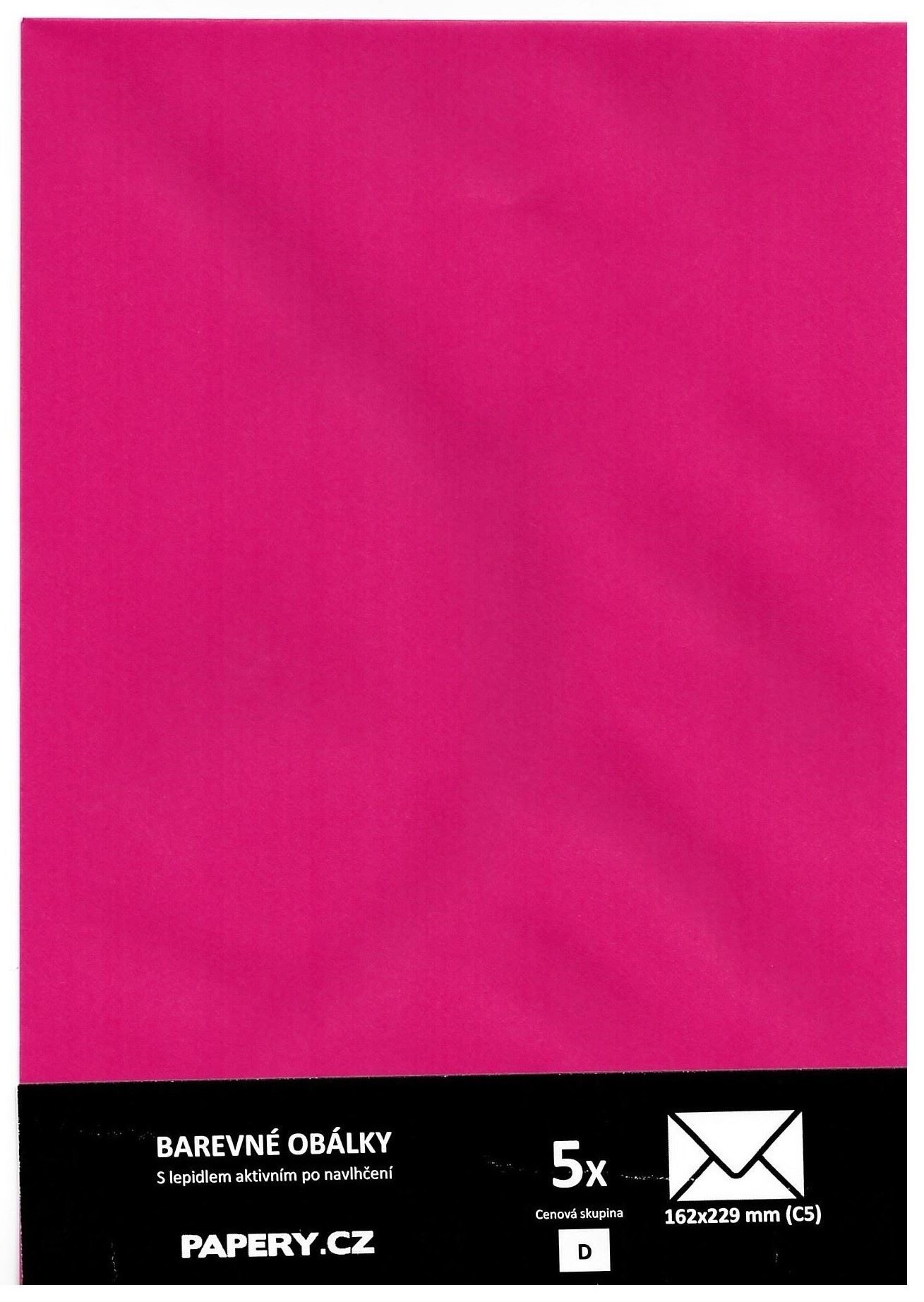 barevná obálka 162X229 RŮŽOVÁ, 5 kusů, 100 gm2, olizová