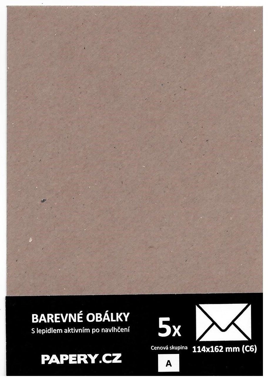 barevná obálka 114X162 HNĚDÁ RECYKLOVANÁ, 5 kusů, 100 gm2, olizová