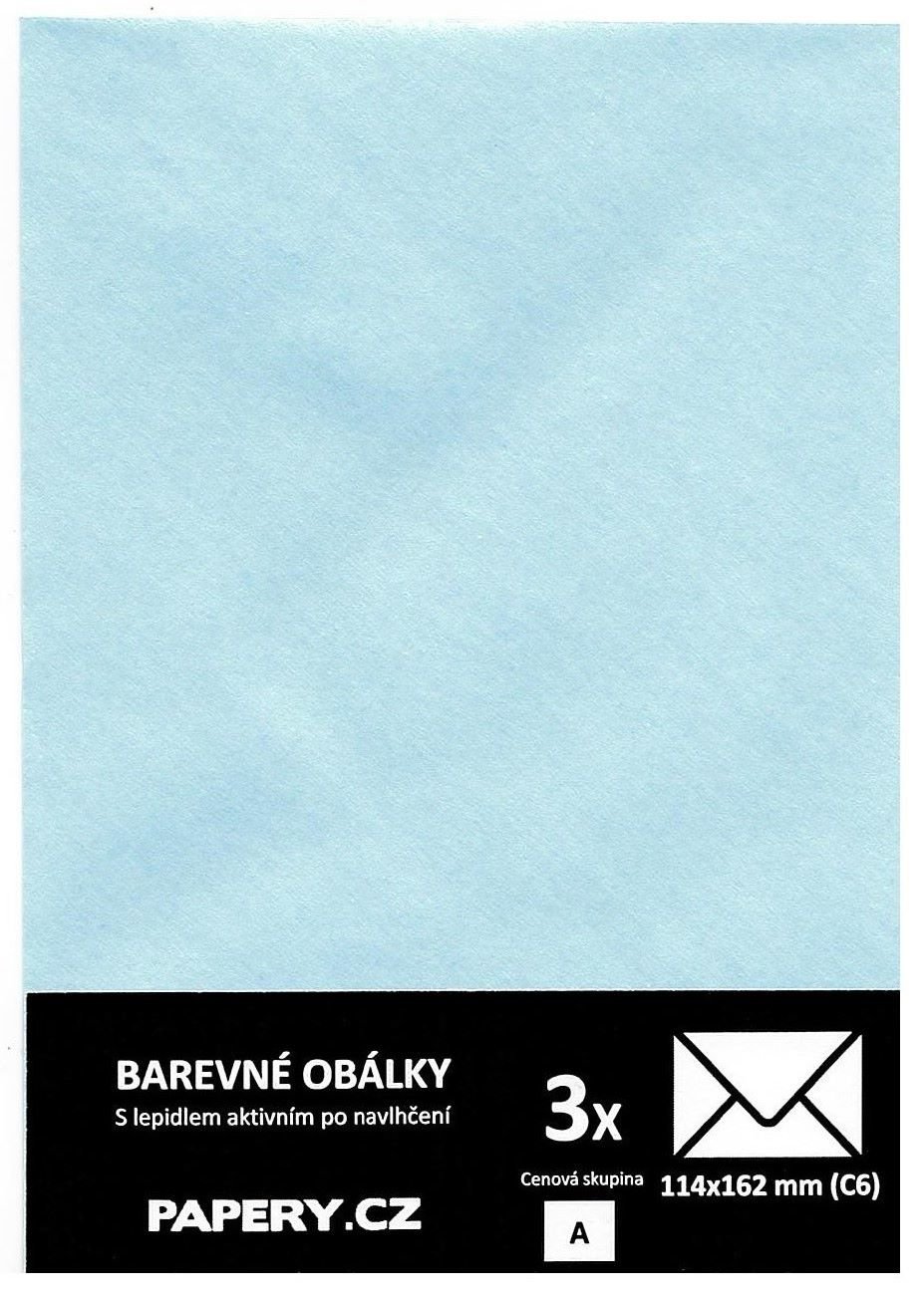 barevná obálka 114X162 MODRÁ SVĚTLÁ METALICKÁ, 3 kusy, 100 gm2, olizová