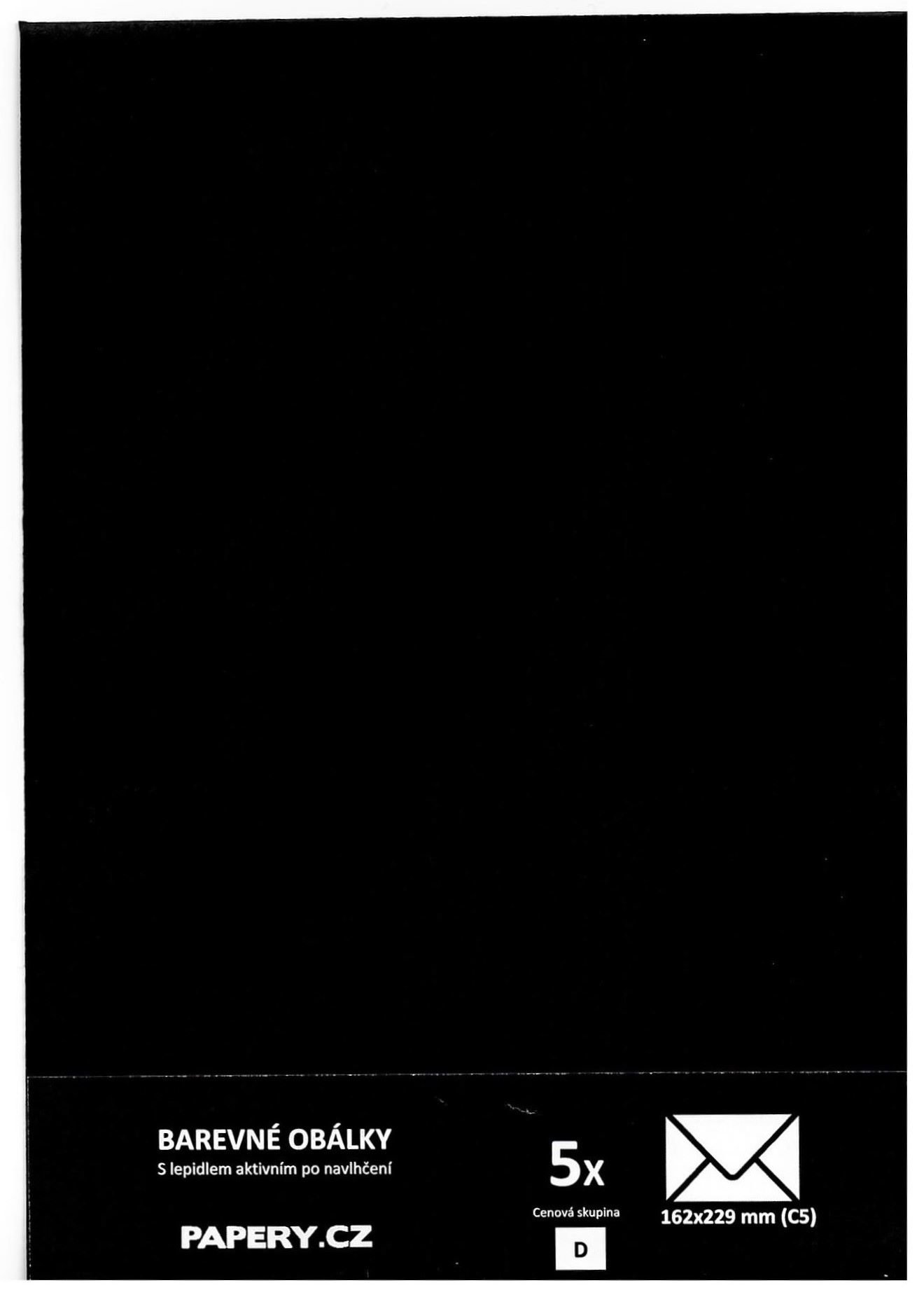 barevná obálka 162X229 ČERNÁ, 5 kusů, 100 gm2, olizová
