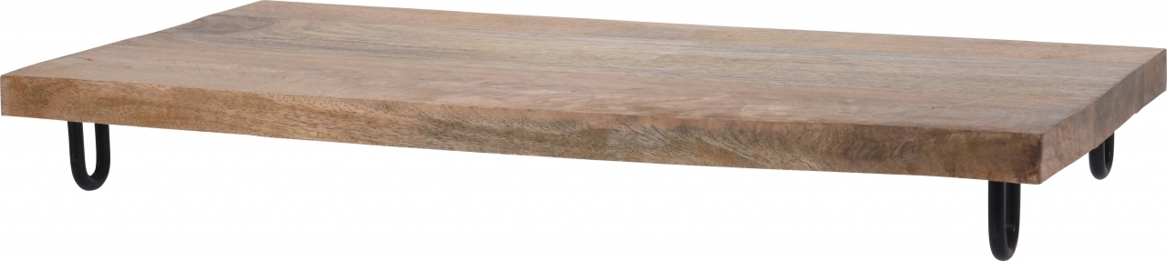Servírovací podnos s kovovýma nožkama z mangového dřeva vám díky kvalitnímu materiálu vydrží hodně dlouho. Mangové dřevo je neobyčejně tvrdé, odolné i vůči vlhkosti, a zároveň vzhledově atraktivní, což z něho činí ideální surovinu na výrobu kuchyňského náčiní.