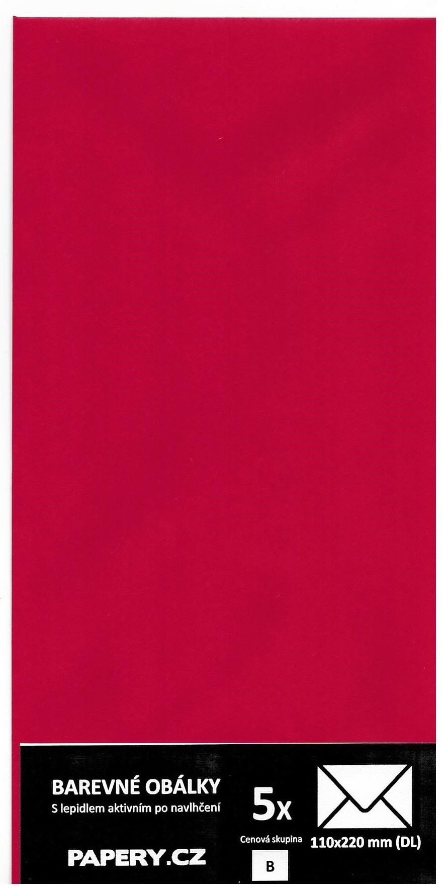 barevná obálka 110x220 ČERVENÁ TMAVÁ, 5 kusů, 100 gm2, olizová