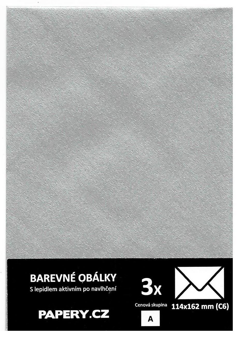 barevná obálka 114X162 STŘIBRNÁ METALICKÁ, 3 kusy, 100 gm2, olizová