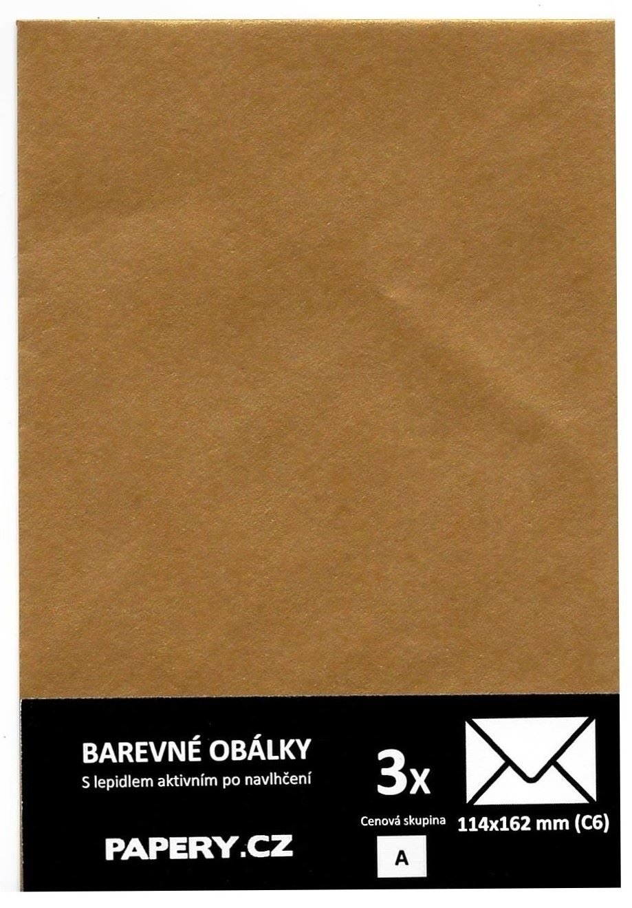 barevná obálka 114X162 ZLATÁ METALICKÁ, 3 kusy, 100 gm2, olizová