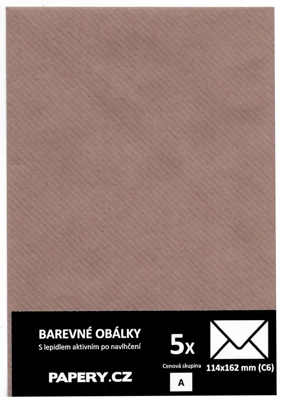 barevná obálka 114X162 HNĚDÁ S PRUHY, 5 kusů, 100 gm2, olizová