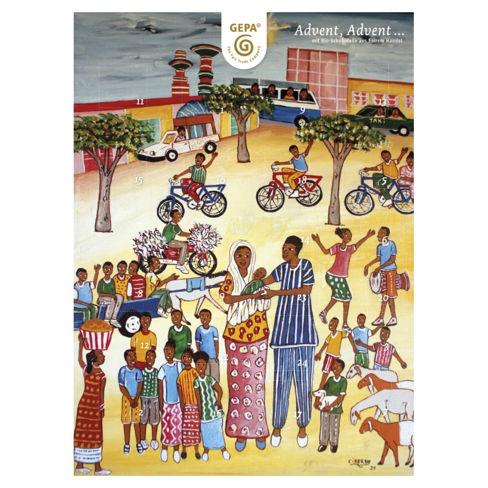 Gepa Bio adventní kalendář s mléčnou čokoládou, 37 % kakaa