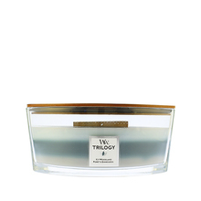 WoodWick Icy Woodland svíčka loď Trilogy 453,6g