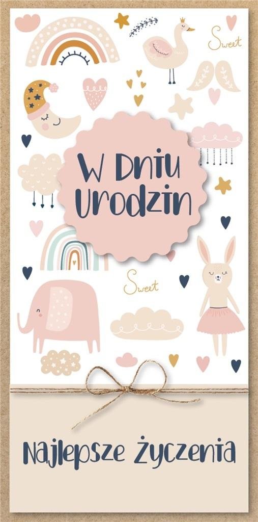 Karnet okolicznościowy z kopertą i życzeniami w środku. prečítať celé