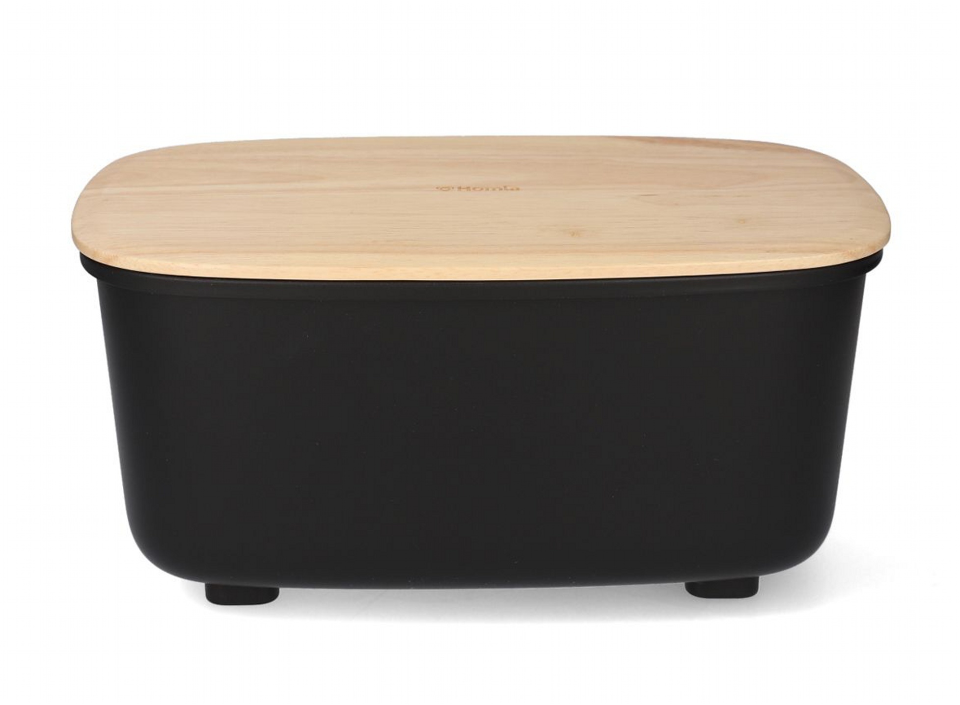 Plastový chlebník s víkem z pryžového dřeva ALAN černá 34x17x21 cm Homla