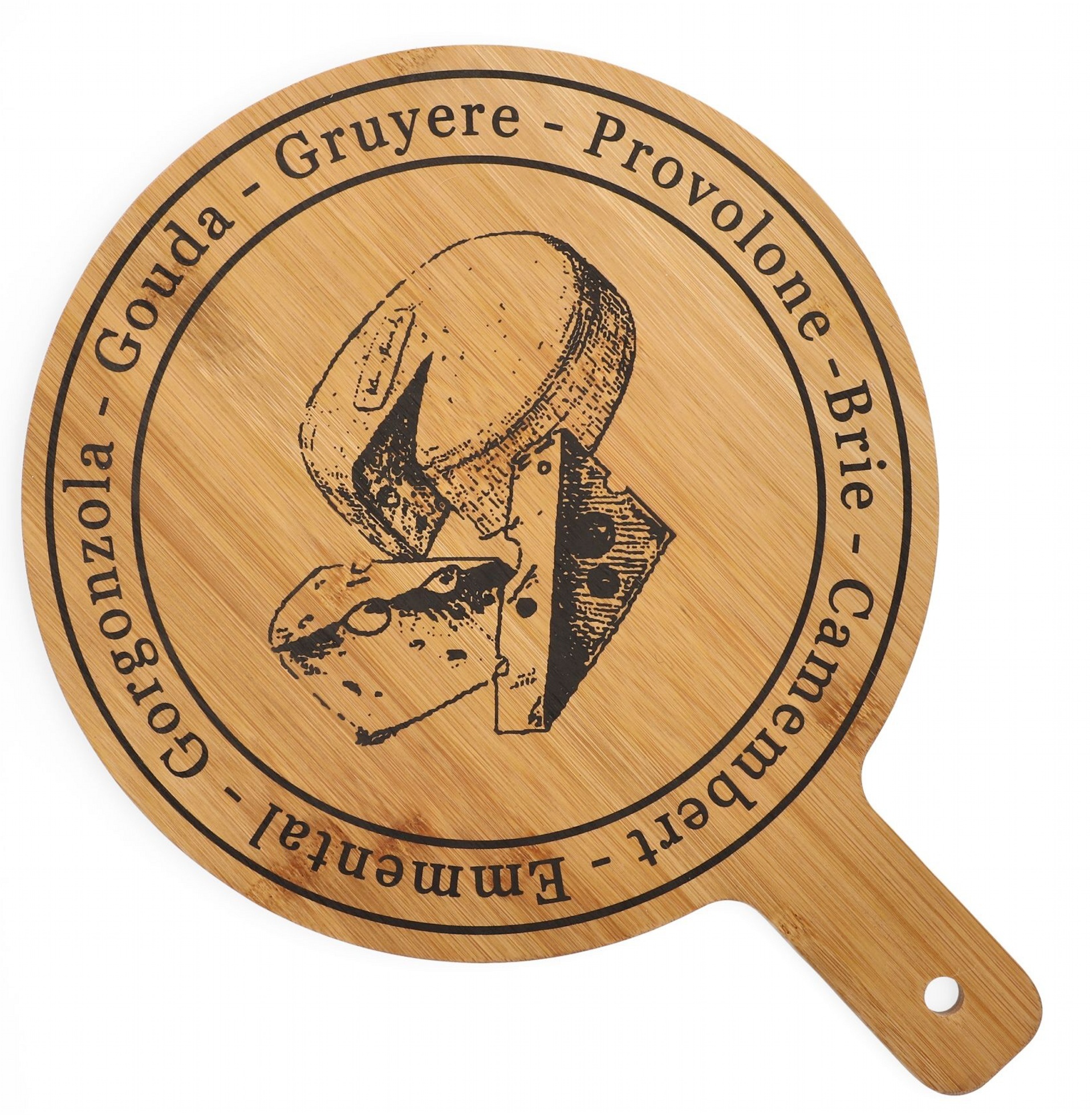 Servírovací kulaté prkénko BAMBOU v přírodní barvě s motivem sýra 40x30 cm Homla