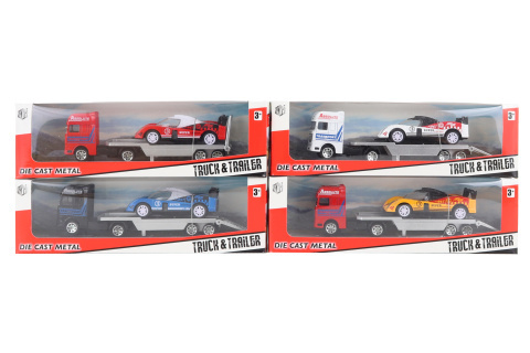 Tento kompletný set obsahuje masívny kamión o rozmere 18 x 5 cm a menšie autíčko o veľkosti 8 x 2,5 cm, ktoré perfektne dopĺňa kamión. Vďaka odolnému prevedeniu z kovu sú obe vozidlá pevné a vhodné aj pre aktívne hranie detí od 3 rokov.