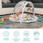 Aktivity deka pro rozvoj miminkaLežící miminko zaujmou visící hračky, které ho motivují po nich sáhnout, aby je rozhoupaly a rozcinkaly. Děťátko tak trénuje své psychomotorické dovednosti. Pro uklidnění lze pustit příjemnou melodii z jedné ze závěsných hraček.Podpůrný polštářek pro trénink pasení...