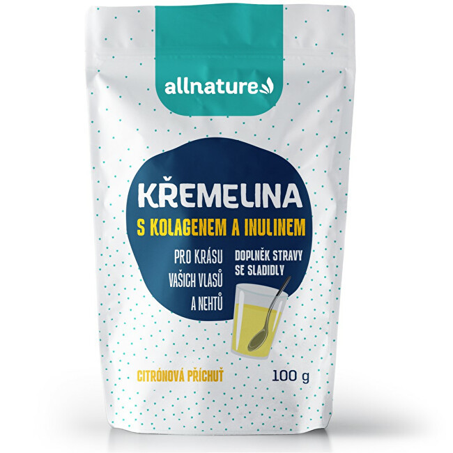 Křemelina s kolagenem a inulinem - kombinace přírodní křemeliny, kolagenu a inulinu je ideálním mixem pro podporu krásy a struktury vlasů, nehtů a pokožky. Připravte si z prášku osvěžující citronádu s obsahem organického křemíku, hovězího kolagenu a sladké vlákniny.