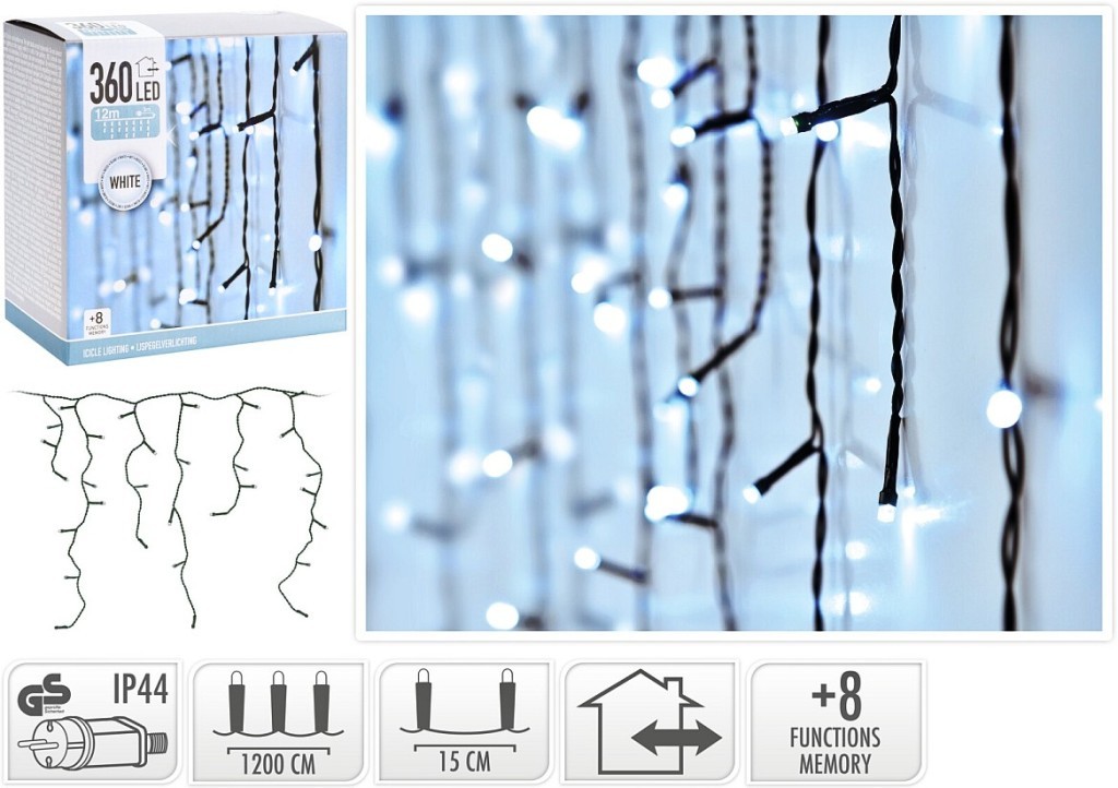 - rozptyl mezi rampouchy se žárovkami: 15 cm