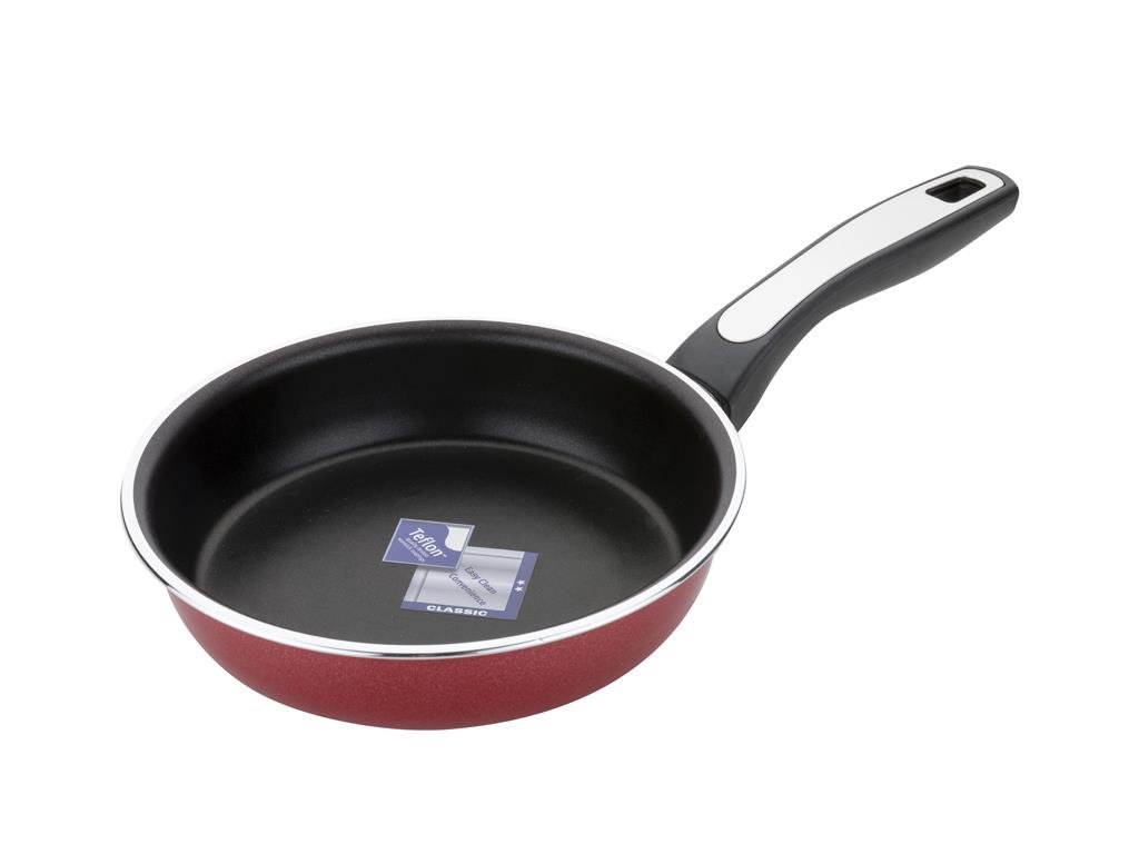 Pánev 18x4,5 cm, vyrobena z extrudovaného hliníku, potažena originální povrchovou úpravou TEFLON CLASIC, tloušťka stěny 2,5 mm, okraj zajištěný kovem, nezahřívací bakelitová rukojeť, vhodné do myčky, ale doporučeno ruční mytí, vhodné na všechny sporáky , včetně indukce !!, červená a černá barva
