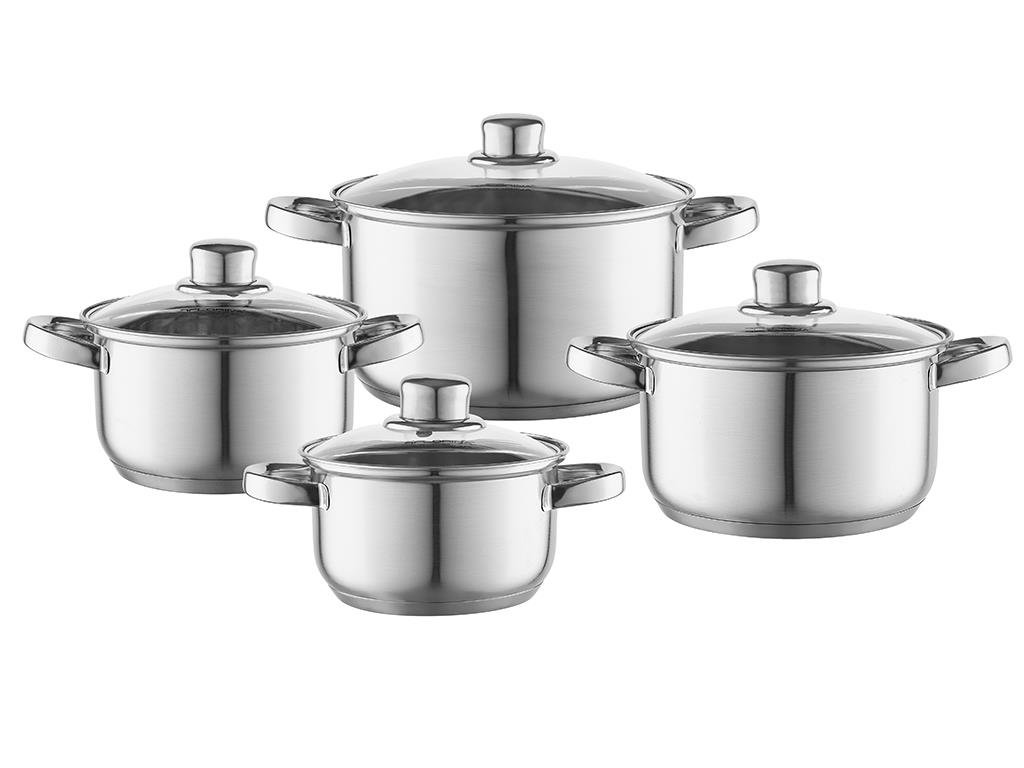 Každý hrniec je vybavený indukčným dnom, vďaka čomu sú vhodné pre všetky typy sporákov, vrátane indukčných. Hrúbka steny 0,4 mm a kombinácia materiálov hliník a železo zabezpečuje rovnomerné a rýchle rozloženie tepla, čo vedie k úspore energie a lepšiemu výsledku pri varení. Sada obsahuje osem kusov rôznych veľkostí - od 1,25 litra až po 4,5 litra - takže budete mať vždy pod kontrolou množstvo pripravovaného jedla.