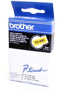 Brother TC-691, 9mm x 7,7m, černý tisk / žlutý podklad, originální páska