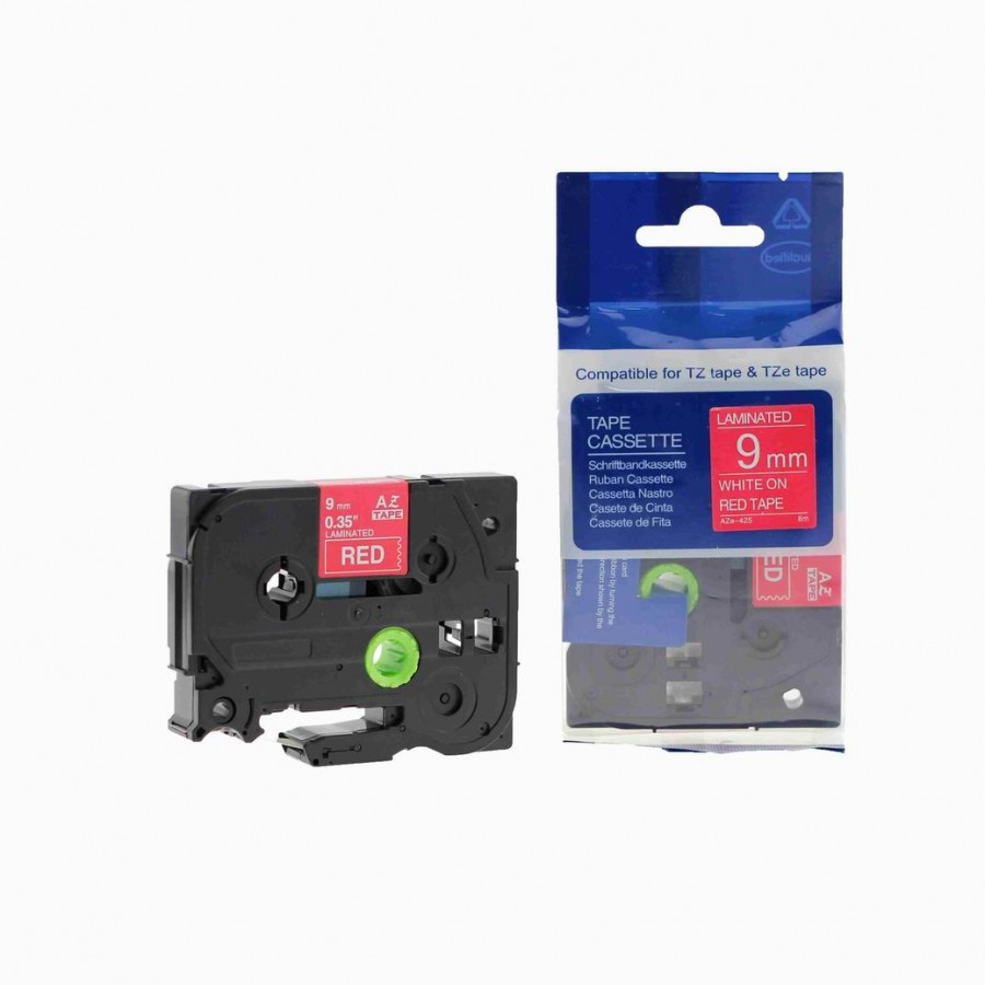 Kompatibilní páska s Brother TZ-425 / TZe-425, 9mm x 8m, bílý tisk / červený podklad