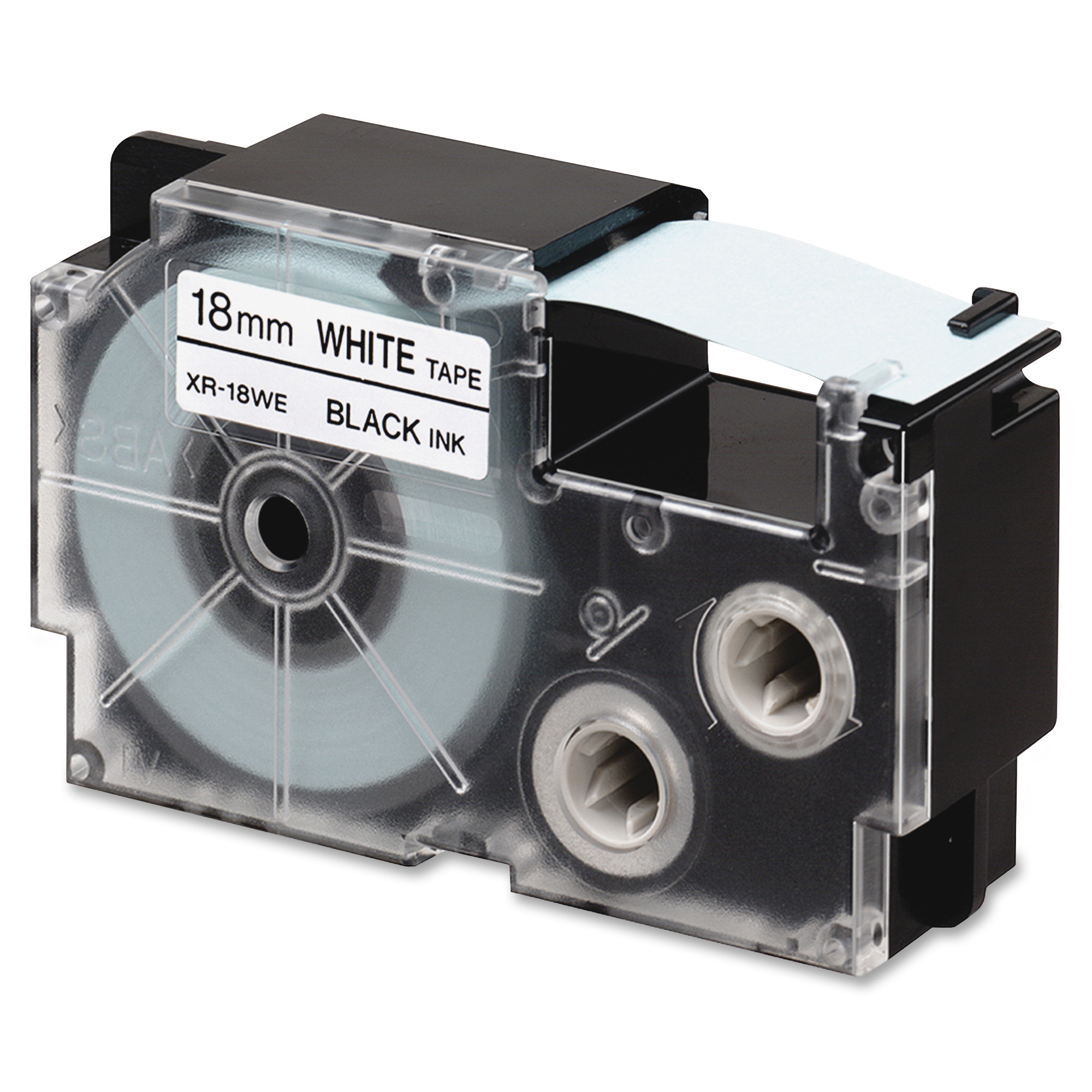 Casio R11WE (XR-18HSWE), 18mm x 2m, černý tisk / bílý podklad, smršťovací, kompatibilní páska