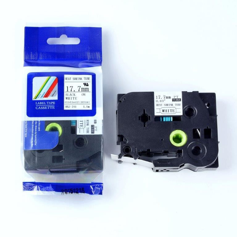 Kompatibilní páska s Brother HSe-241, 17,7mm x 1,5m, černý tisk / bílý podklad