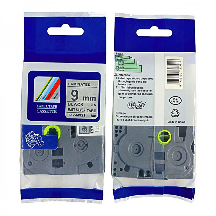 Kompatibilní páska s Brother TZ-M921 / TZe-M921, 9mm x 8m, černý tisk / stříbrný podklad