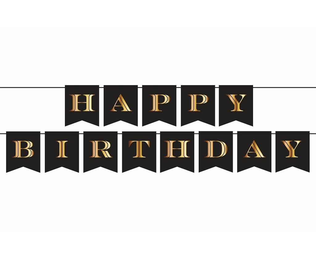 Girlanda papierowa Happy Birthday - B&G Party Kolor: czarny / złoty Napis: Happy birthday Ilość: 1 szt. Długość: 250 cm Kolekcja: Black & Gold Party Producent: Godan S.A. prečítať celé