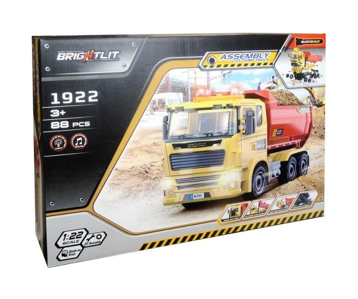 Ciężarówka budowlana do samodzielnego skręcenia. Ciężarówka wydaje dźwięki i świeci kolorowym światełkiem. Ciężarówka posiada ruchome części: otwieranie drzwi, unoszenie przyczepy w górę czy unoszenie kabiny ciężarówki. Zestaw składa się z 88 części. prečítať celé