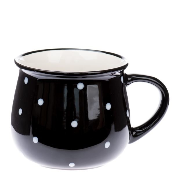Keramický hrnek (770 ml) - černý s bílými puntíky, 6/24