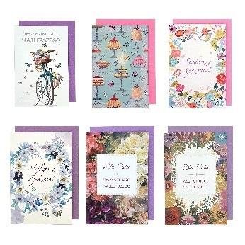 Miks wzorów, towar wysyłany losowo. Cena za sztukę.Kartka uniwersalna składana. Nadruk z brokatem, hot stamp. Wymiary: 11,5 x 17 cm. prečítať celé