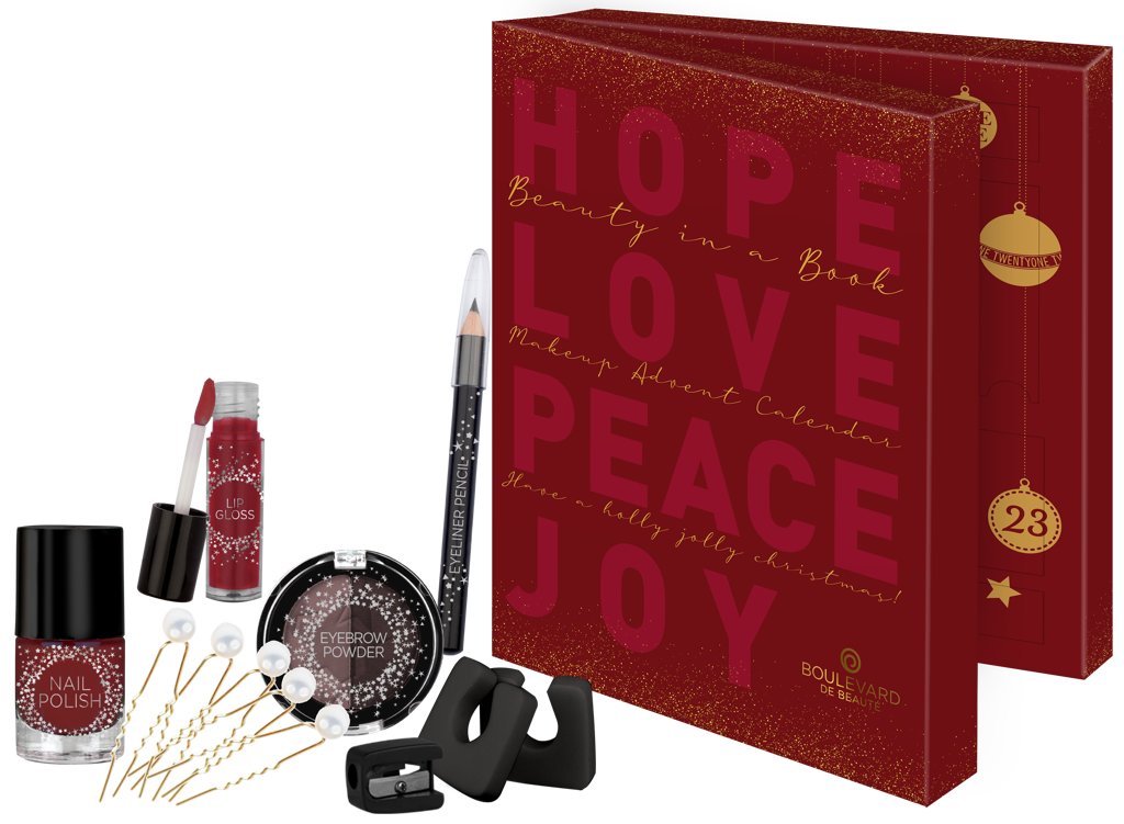 Adventní kosmetický kalendář Beauty in a Book. Obsahuje 3 rtěnky,