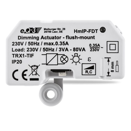 Stmívací akční člen - skrytá montáž HmIP-FDTProgramovatelný bezdrátový Stmívací akční člen (HmIP-FDT) pro skrytou montáž, napájený ze sítě 230 V.Zařízení je předurčeno pro ovládání světelných okruhů, ale může spínat a regulovat i jiná zařízení splňující technické parametry.