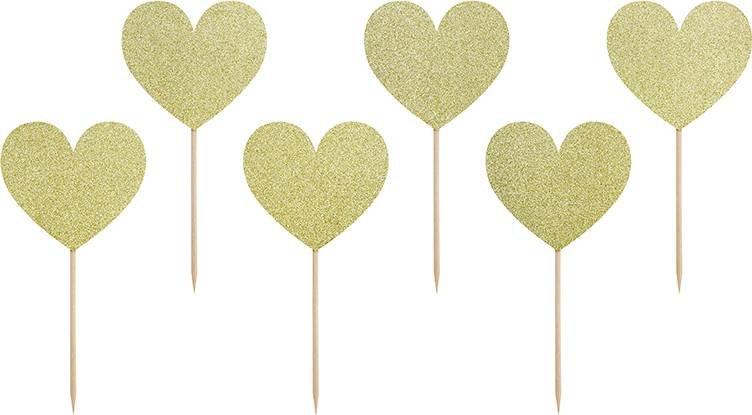 PartyDeco zapichovací dekorace na muffiny Zlatá srdíčka