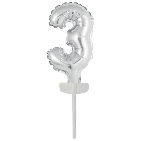 Fóliový balónek stříbrný mini - zápich do dortu číslo 3 - Amscan