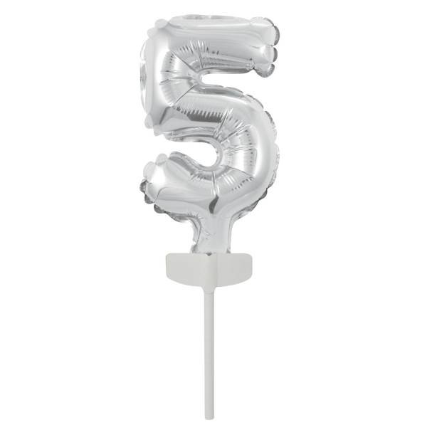 Fóliový balónek stříbrný mini - zápich do dortu číslo 5 - Amscan