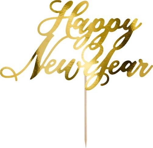 PartyDeco zapichovací dekorace na dort zlatá Happy New Year