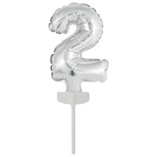 Fóliový balónek stříbrný mini - zápich do dortu číslo 2 - Amscan