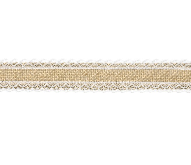 Jutová stuha s dvojitou krajkou. Rozměry 4 x 500 cm. prečítať celé