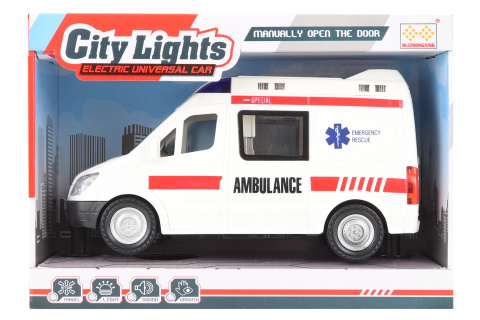 Plastová sanitka o rozměru cca 22 x 12 x 9 cm na baterie. Sanitka vydává zvuky a svítí. Napájení 3x AA baterie . nejsou součástí. Rozměr balení cca 26,5 x 18,5 x 11 cm. Věk 3+ prečítať celé