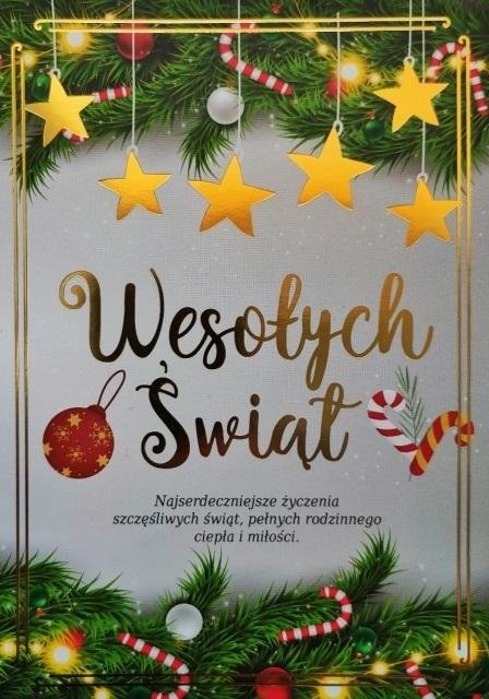 Karnet 1k. Klasyczny karnet na Święta Bożego Narodzenia. Uszlachetniony wysokiej jakości hotstampingiem (złocenie). Karnet zawiera życzenia. prečítať celé