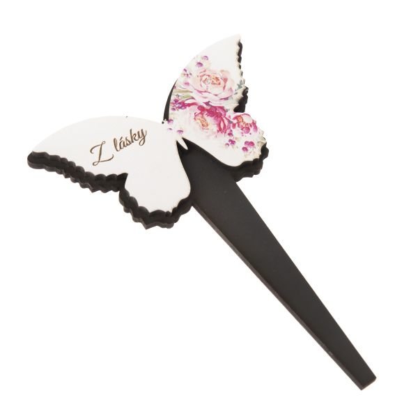 Dřevěný zápich motýl - růže, "Z lásky", 0/50